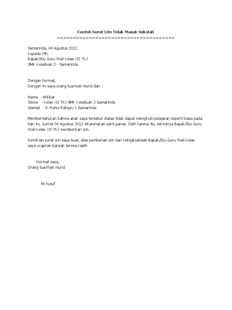 Sebelum membahas lebih lanjut, mari simak oleh karena itu, jika kalian sedang sakit dan tidak bisa mengikuti pelajaran yang ada di sekolah, kalian dapat. Entah itu kuliah, kerja, maupun sekolah. Contoh surat izin sekolah karena sakit. Pengalaman mimin dulu ketika bingung membuat surat tidak izin tidak masuk sekolah ketika smp waktu itu karena sakit akhirnya mimin nitip di buatin surat oleh temen. Surat izin sekolah sd contoh surat izin sekolah buatan sendiri contoh surat izin sekolah karena urusan keluarga cara membuat surat izin sekolah namun sayang masih sering dijumpai surat surat sakit tidak masuk sekolah yang tulisannya salah.